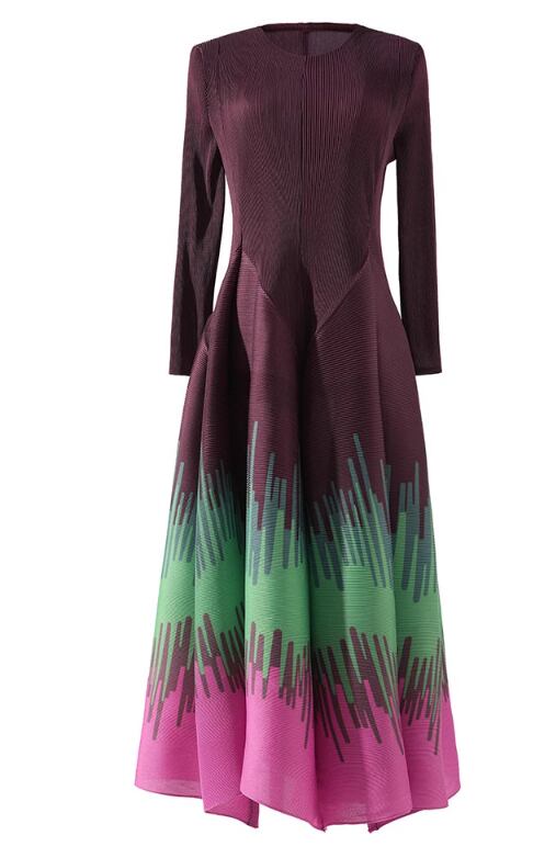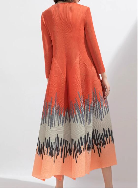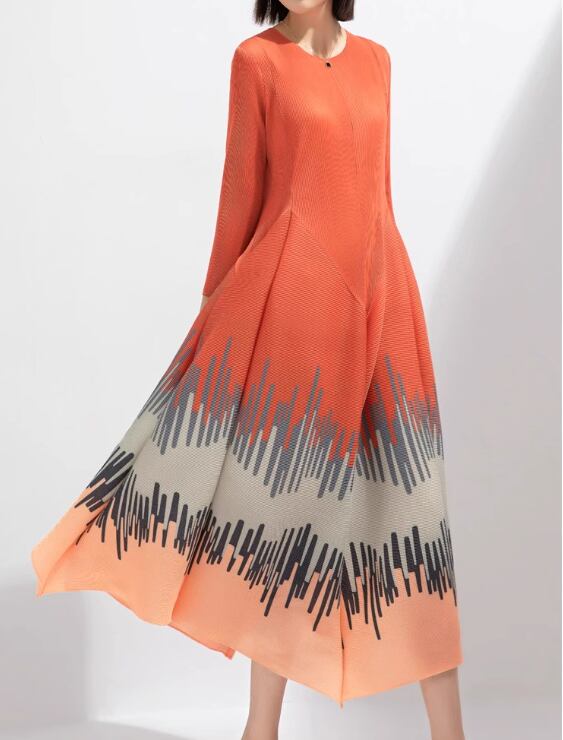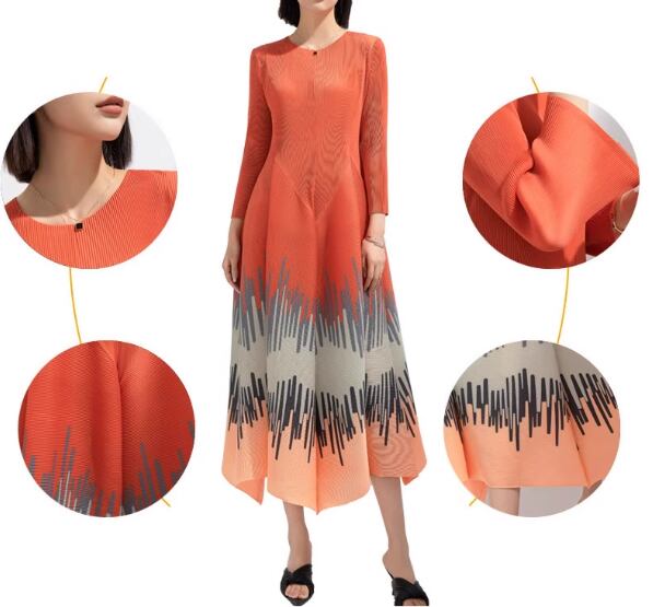 女性用ストライププリントプリーツスカート 2024春夏スリムミヤケビッグフラワーバッドコントラストカラーロングスカートボトムスカート