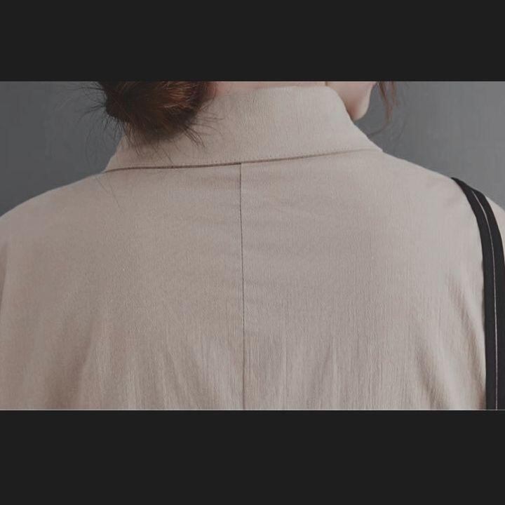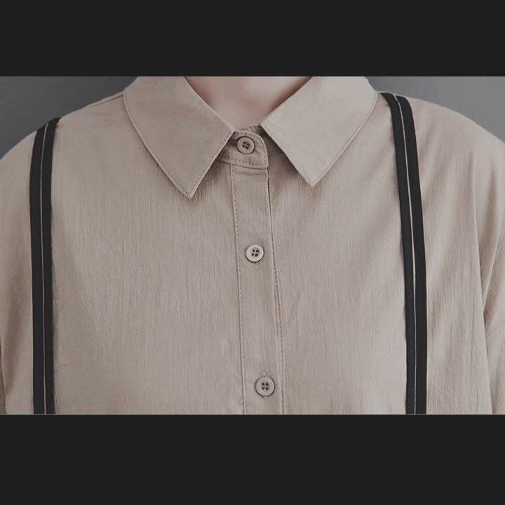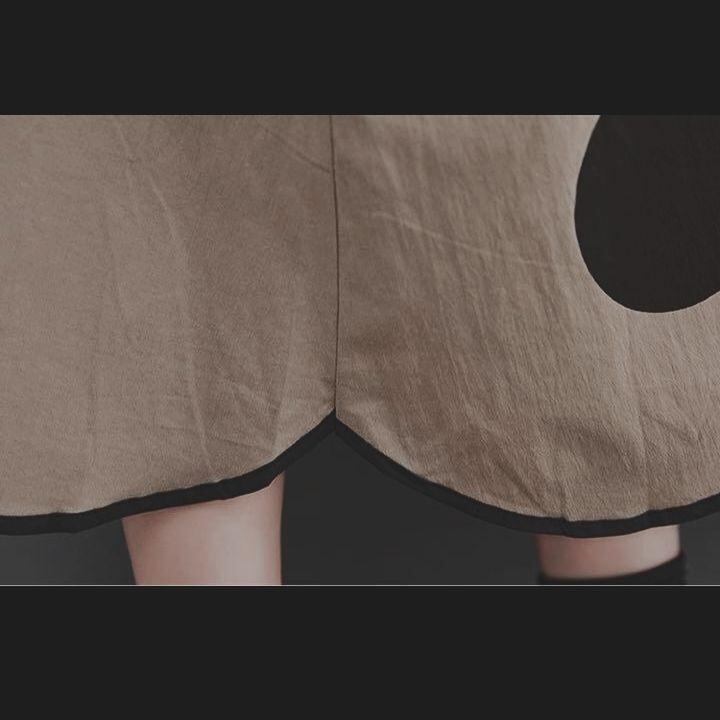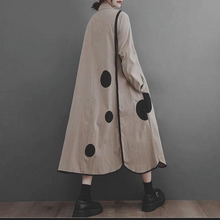 ★モード系★デザイン可愛いドット★長袖A型シャツ★ワンピース★ペールカーキ★