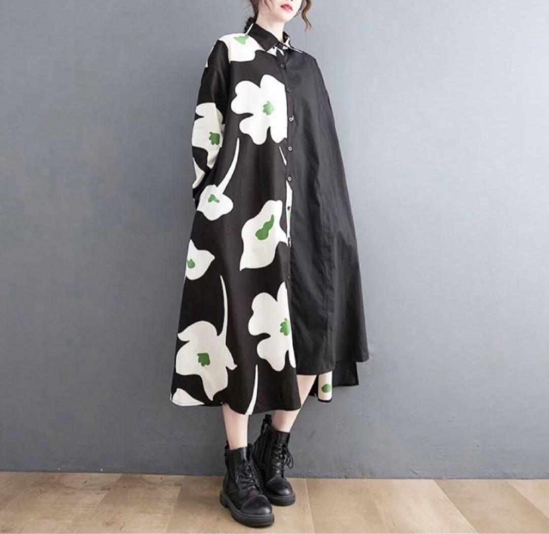 花柄 ブラック 黒 モード系 ロングワンピース 大人 原宿 ゆったり