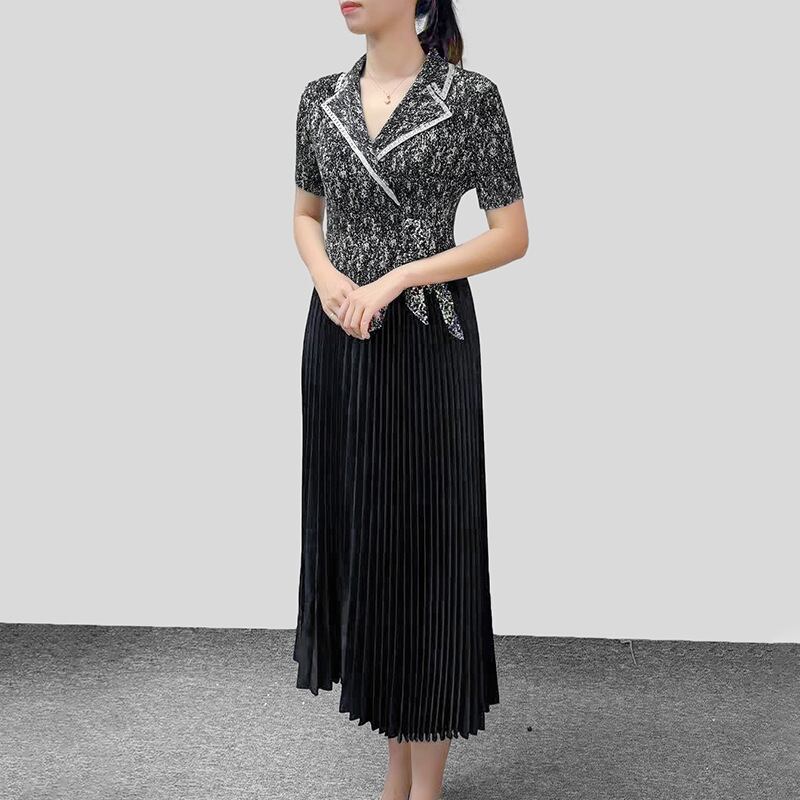 クロスボーダー花柄ママドレスは、大人可愛い雰囲気たっぷりのフェイクツーピーススーツドレスプリーツドレスです。