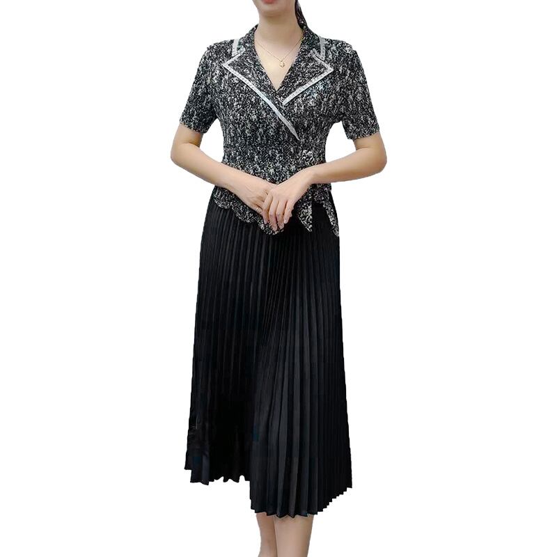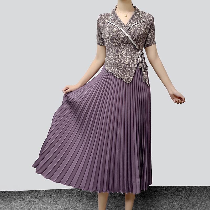 クロスボーダー花柄ママドレス フェイクツーピーススーツドレスプリーツドレス