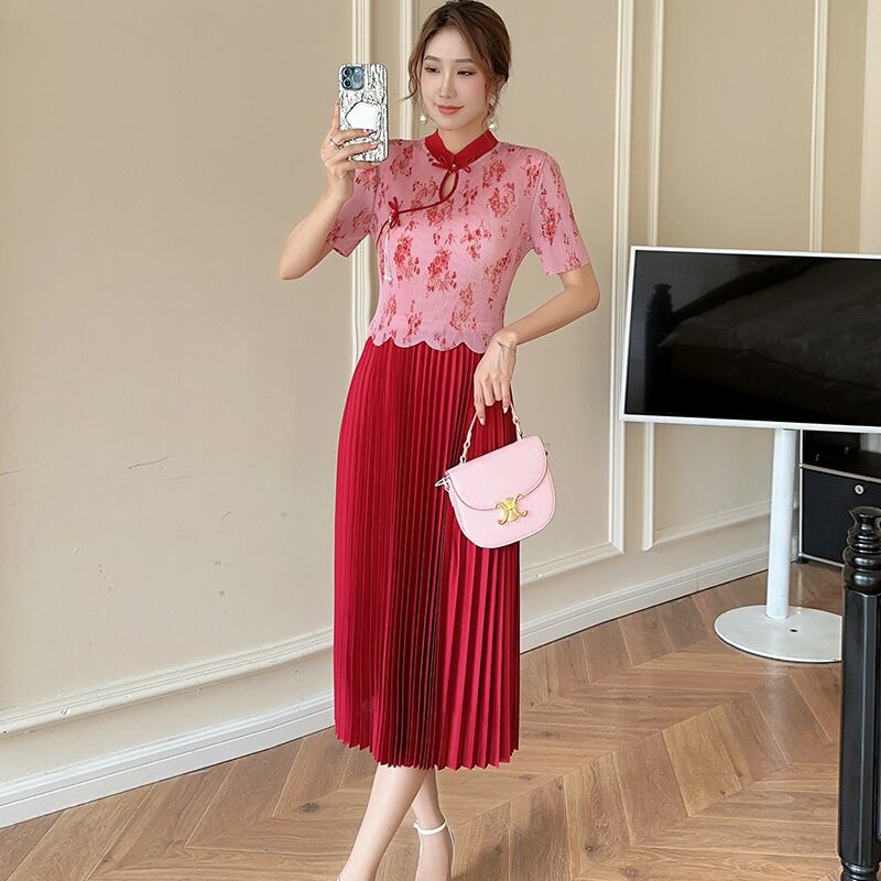 新作チャイニーズスタイルナショナルスタイルチャイナドレスサマーロングドレスサマー高級プリーツドレス