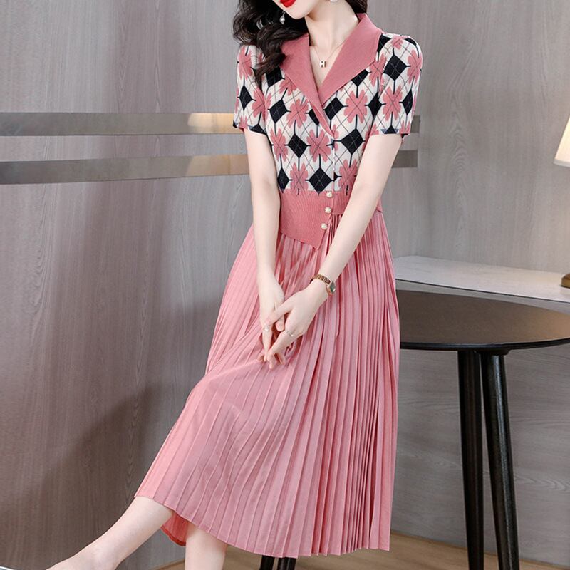 プラスサイズスモールフレグランススーツスカートプリーツスーツカラードレス