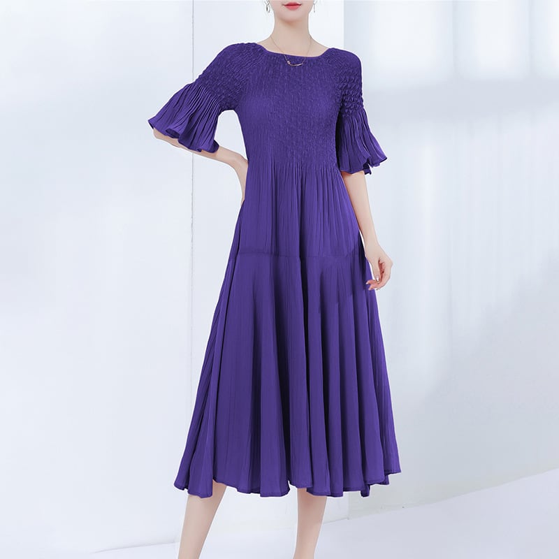 ハイエンドベルスリーブビッグスカートサマースリミング女性用プリーツドレス