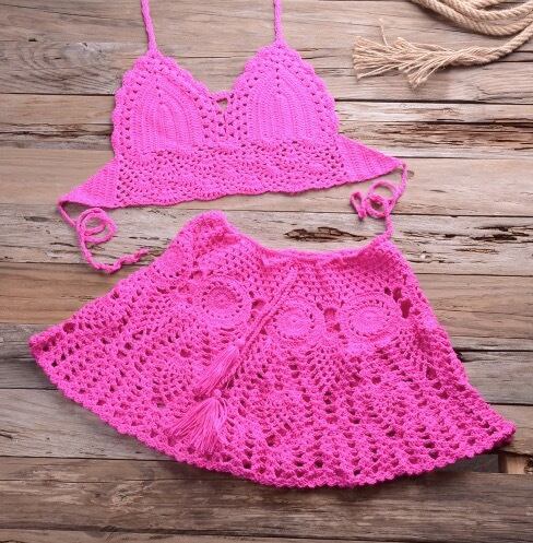 ビーチリゾートを彩る、ヨーロピアン&アメリカンスタイルが融合したハンドフックビキニセット。華やかでセクシーなデザインが魅力のチェストラップは、着心地も抜群です。カッティングが施されたプリーツスカートは、スリット入りで足さばきも◎。水辺でのパフォーマンスをサポートする一着です。