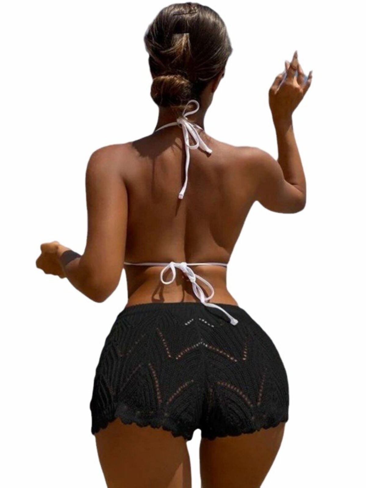 ヨーロッパとアメリカの夏新作水着パンツ女性用スパビーチバケーションソリッドカラーセクシーニットホロービキニビーチパンツ